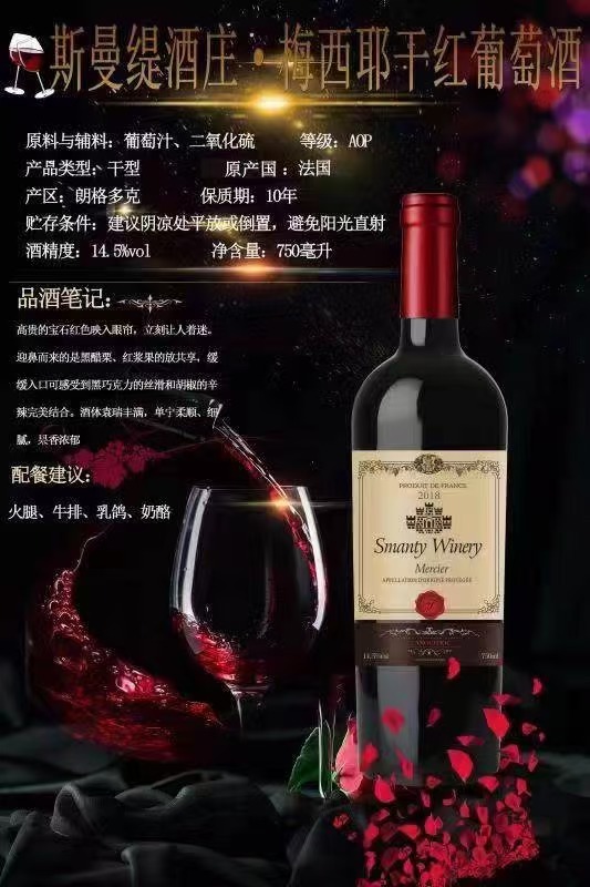 斯曼缇酒庄·梅西耶干红葡萄酒!原料与辅料:葡萄汁、二氧化硫;等级:AOP;产品类型:干型;原产国:法国;酒精度:14.5%vol,净含量:750毫升。