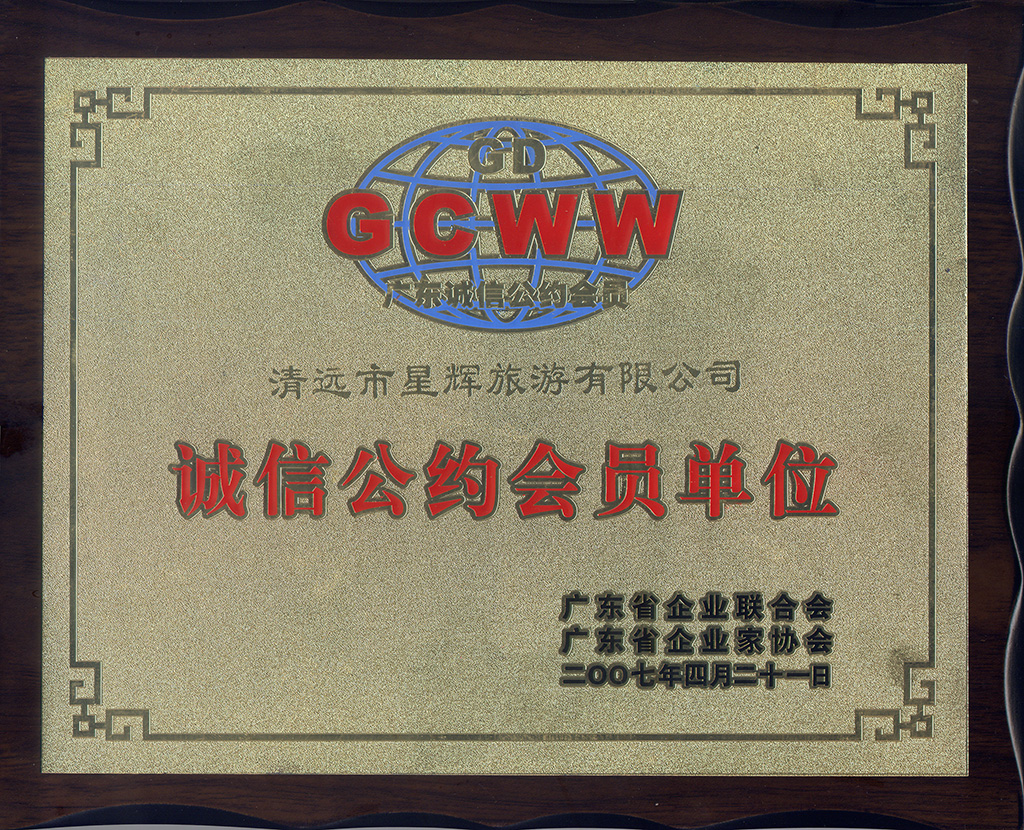- 2006年度获清远市旅游局授予:“清远市十佳旅行社”称号。